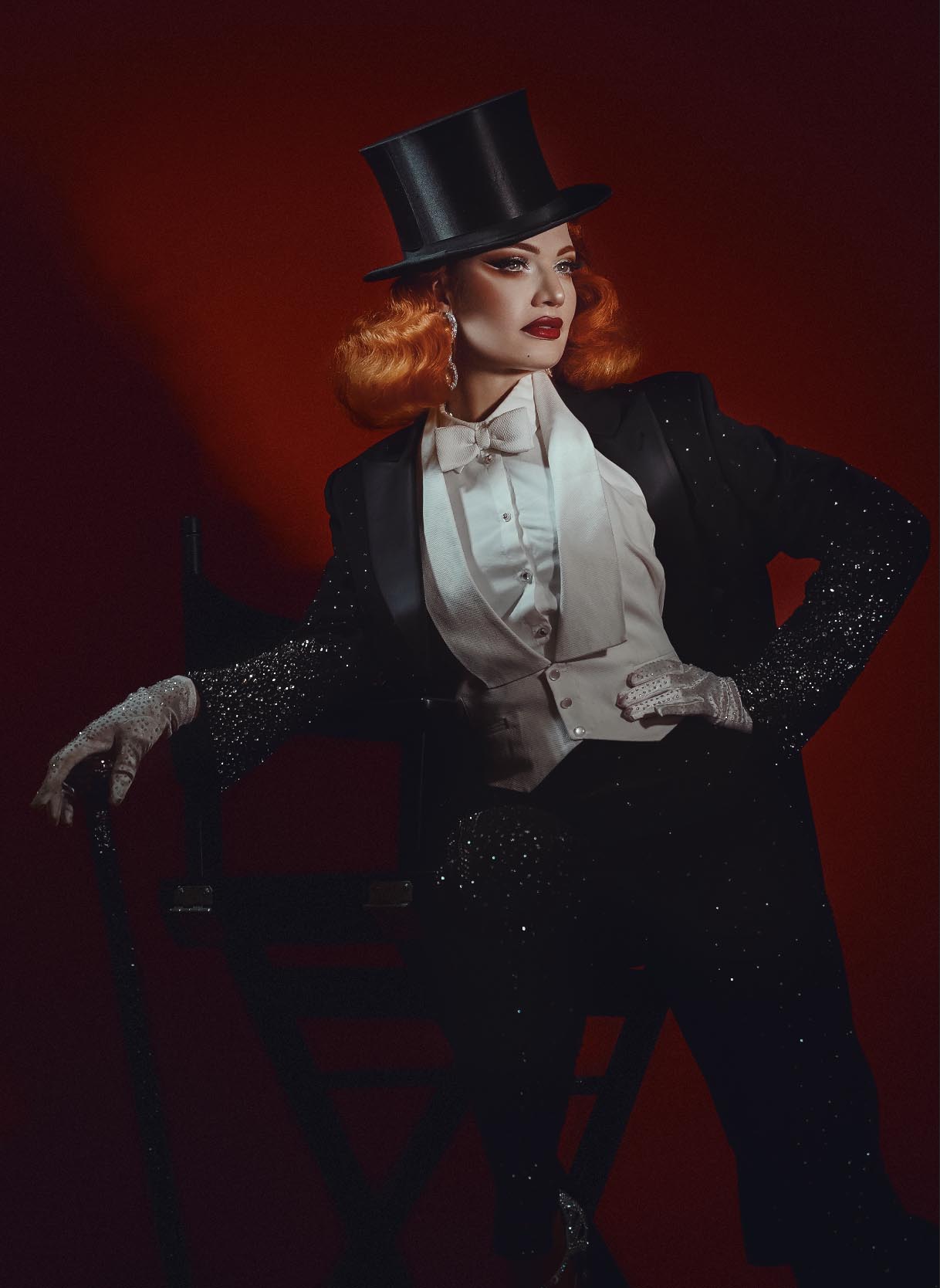 Bettie steps out of the silver screen and onto the stage in a tribute to the golden age of Hollywood. Inspired by the smooth steps of Fred Astaire and the sass of Marlene Dietrich, this classic burlesque act blends crisp tuxedo charm with showgirl sparkle, glittering, bold, and irresistibly captivating.